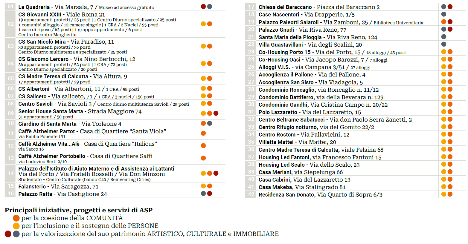 ASP - nata nel 2014- è una azienda pubblica partecipata al 97% dal Comune di Bologna, al 2% dalla Città Metropolitana e all’1% dalla Fondazione Cassa di Risparmio; è una realtà rilevante nel sistema di welfare cittadino, sia nel ruolo di produzione pubblica di servizi, in particolare rivolti agli anziani, sia nel ruolo di cooperazione con il Comune di Bologna per la realizzazione di servizi e interventi sociali destinati alla grave emarginazione adulta, ai servizi di supporto alle persone e famiglie in difficoltà sull’abitare, ai servizi di protezione internazionale.