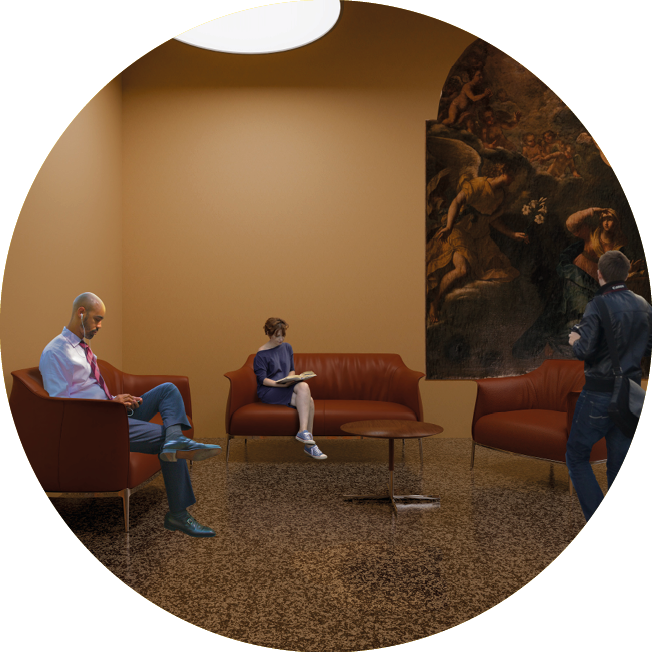 Nella Sala comune, dove sarà raccontata la storia di questo luogo e gli abitanti potranno accogliere ospiti, leggere o conversare, saranno esposti due importanti grandi pale: il Sogno di San Giuseppe di Giuseppe Maria Crespi (Bologna, 1665-1747), uno degli artisti più importanti del primo settecento bolognese e l’Annunciazione di Giovanni Girolamo Bonesi (Bologna, 1653-1725) proveniente dall’Ex Conservatorio delle Putte del Baraccano.