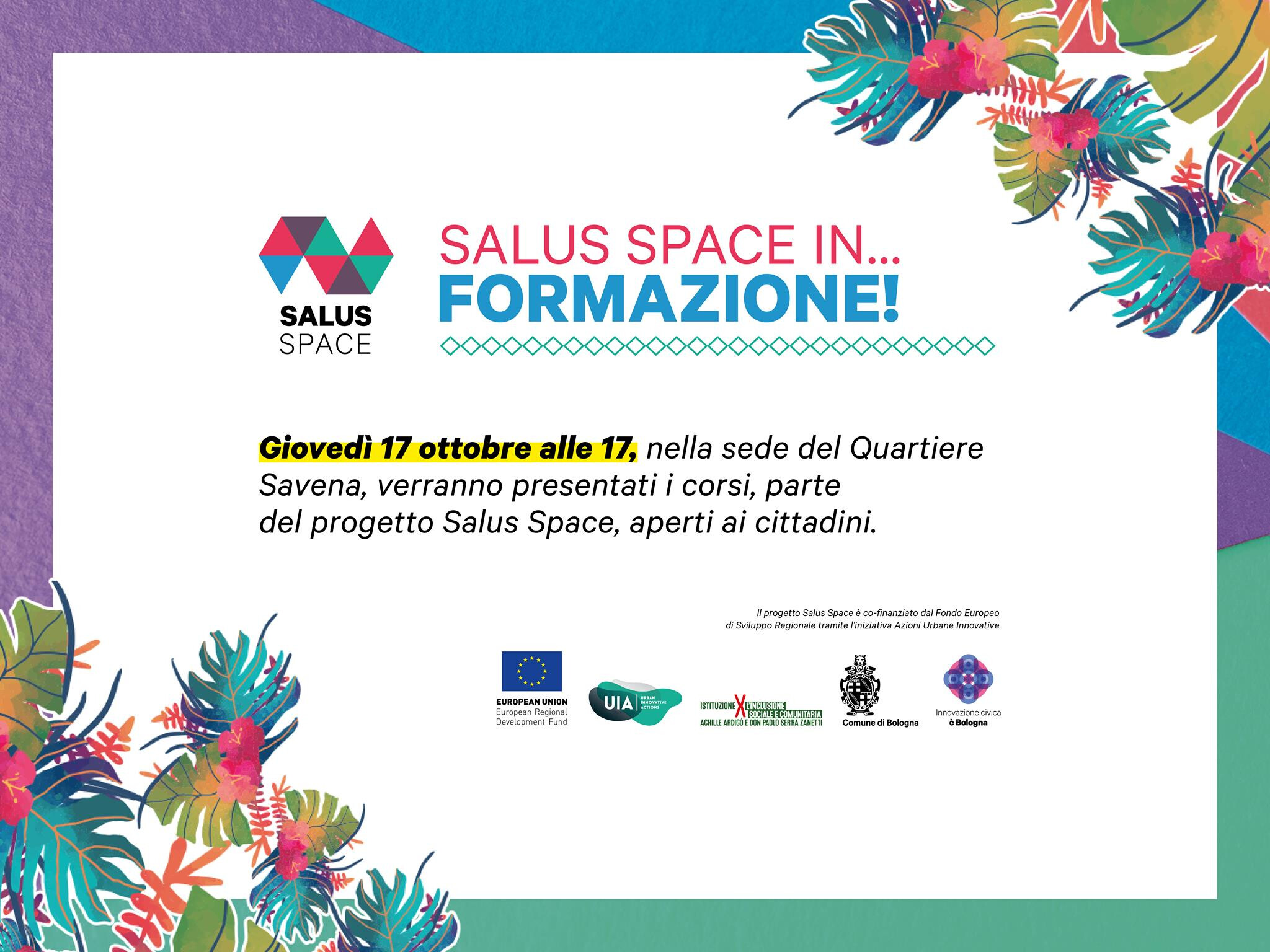 Inoltre, Giovedì 17 ottobre alle 17 verranno presentati i corsi di formazione gratuiti e aperti alla cittadinanza, sempre nell'ambito del progetto Salus Space.