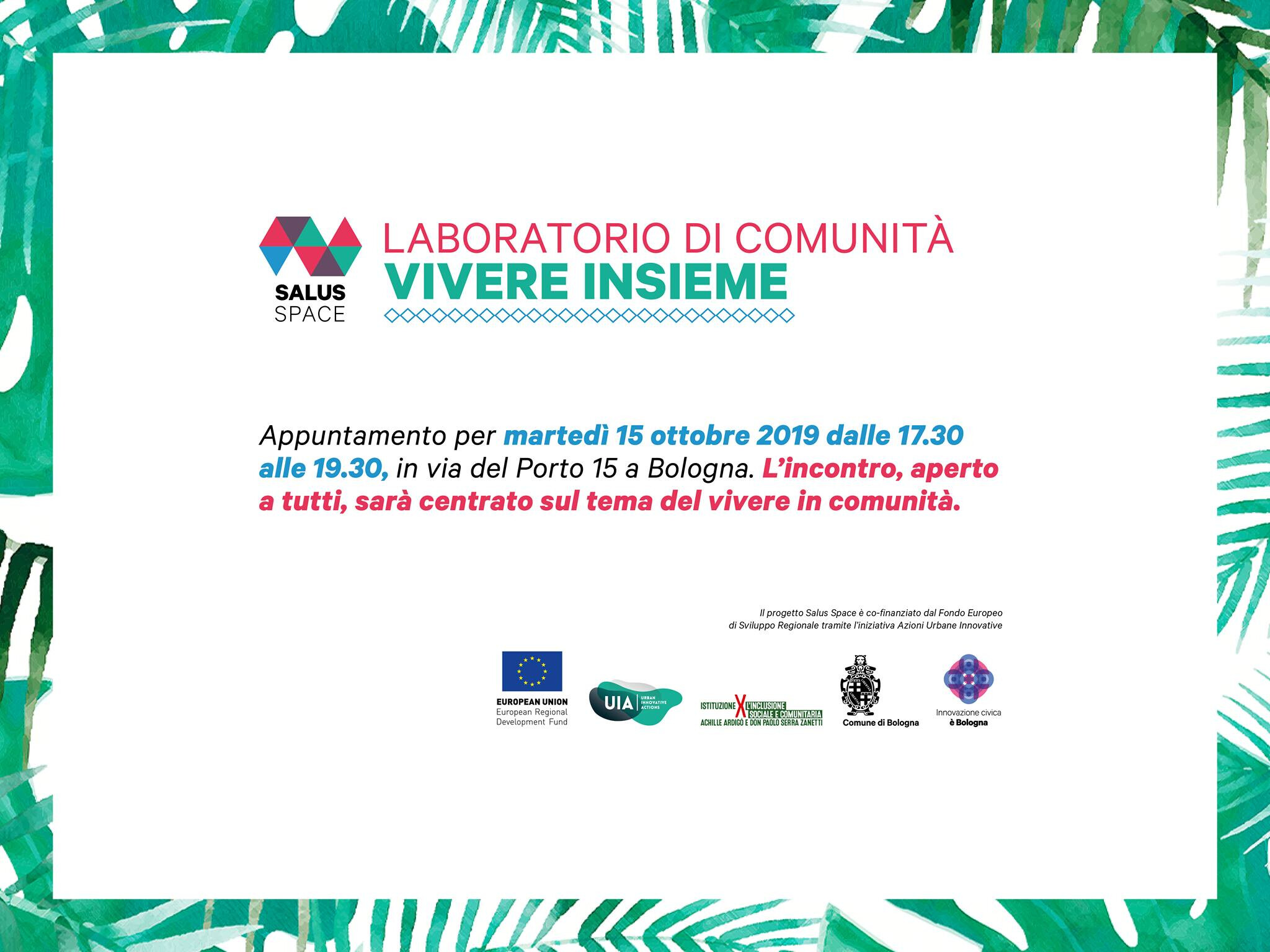 I Laboratori di Comunità, coordinati da ASP, hanno lo scopo di definire una proposta di Carta dei valori e un Regolamento di comunità per Salus Space, lo spazio di benessere,accoglienza e inclusione attiva che aprirà in via Malvezza 2/2.