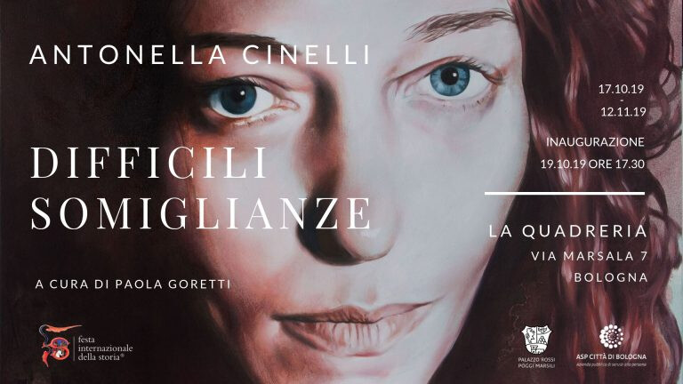 Dal 17 ottobre al 12 novembre 2019, nell’ambito della XVI edizione della Festa Internazionale della Storia, La Quadreria di ASP Città di Bologna ospiterà la mostra “Difficili Somiglianze”, della pittrice contemporanea Antonella Cinelli.Per sviluppare il tema dell’edizione 2019, “viva la storia viva”, presentiamo un progetto dedicato alle donne, del presente e del passato, in cui opere raffiguranti donne contemporanee, realizzate specificamente per questa occasione, si accostano alle opere e alle figure femminili presenti del museo. Le figure scelte sono Elena Ceria (Vice Questore), Bruna Orlandi (scrittrice), Federica Rapini (editrice), Federica Mazzoni (Presidente Commissione Scuola e Cultura del Comune di Bologna), e Camilla Sanguinetti (architetto): i loro ritratti dialogheranno con gli ambienti in cui saranno esposti, attraverso un profondo filo conduttore che lega i volti e le storie di ognuna di loro alle molte ed eterogenee figure di donne che dimorano nella Quadreria