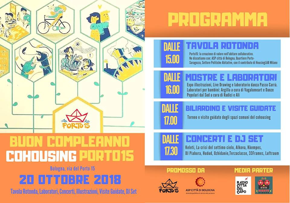 PORTO 15, il progetto di cohousing bolognese di ASP, ha celebrato sabato 20 ottobre il suo primo anno di vita con un pomeriggio di festa nella sua sede di Via del Porto 15. Il pomeriggio si è aperto alle 15 con una tavola rotonda sul tema de “La creazione di valore nell'abitare collaborativo” a cui ha partecipato anche ASP Città di Bologna insieme al Quartiere Porto-Saragozza, Settore Politiche Abitative e con la collaborazione di HousingLAB Milano.