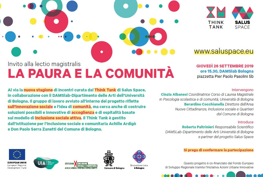 Al via la nuova stagione di incontri curata dal Think Tank di Salus Space. Giovedì 26 settembre 2019, alle 15,30 al DAMSLab / La Soffitta - Università di Bologna si terrà la lectio magistralis dal titolo “La paura e le comunità”.