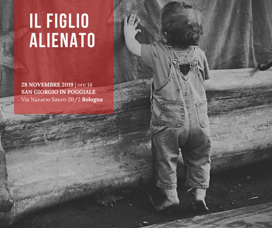 Giovedì 28 novembre 2019 a San Giorgio in Poggiale, Bologna, avrà luogo l'iniziativa della Fondazione Augusta Pini, "Il figlio alienato", iniziativa patrocinata anche da ASP Città di Bologna, con la partecipazione di Chiara Labanti, Responsabile del Centro per le Famiglie di ASP. “Il figlio alienato” è un’iniziativa finalizzata a sensibilizzare sia gli addetti ai lavori, ma soprattutto chi ne è coinvolto, sulle problematiche delle separazioni conflittuali della coppia genitoriale, per rendere meno difficile il distacco e per tutelare e proteggere i figli nell’infanzia, e adolescenza, per un loro sviluppo emotivo e relazionale più confacente.
