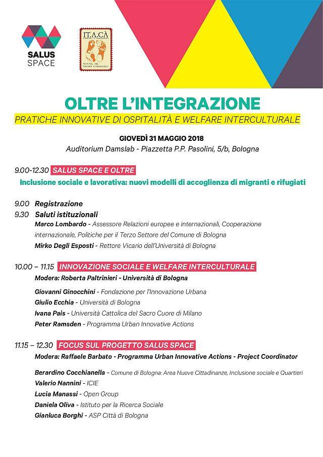 La mattinata di lavori parte proprio dal progetto che coinvolge l’area di via Malvezza per parlare di inclusione sociale e lavorativa, presentando nuovi modelli di accoglienza di migranti e rifugiati. Gianluca Borghi, Amministratore unico di ASP Città di Bologna, presenterà gli aspetti principali e le sfide aperte di quella che sarà la comunità degli abitanti di Salus Space: una comunità aperta, interculturale e partecipe.