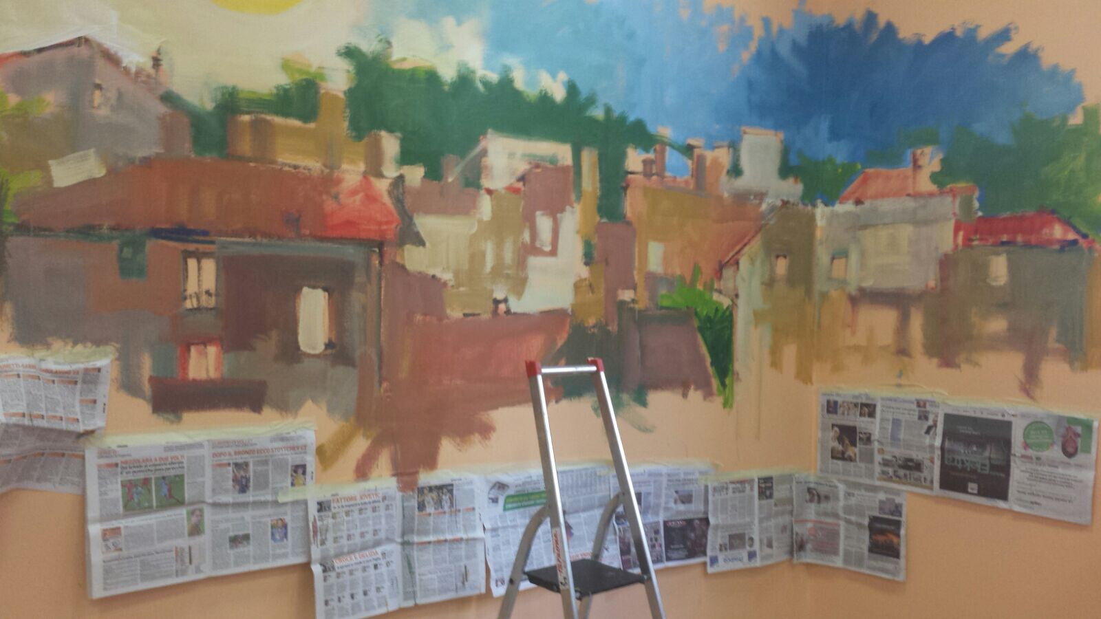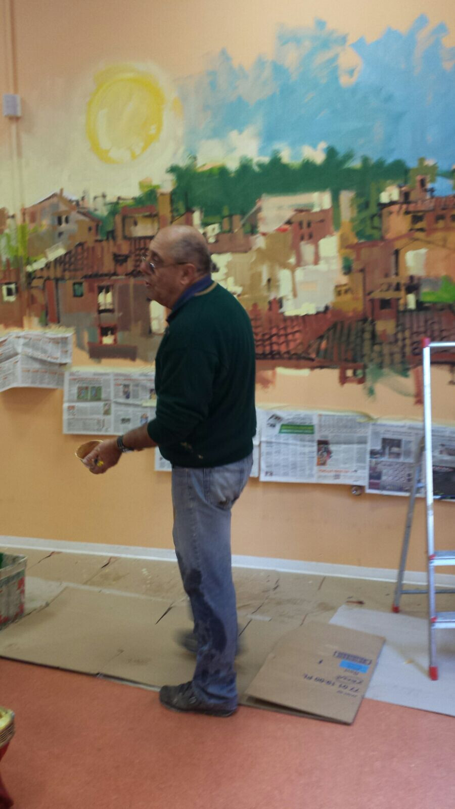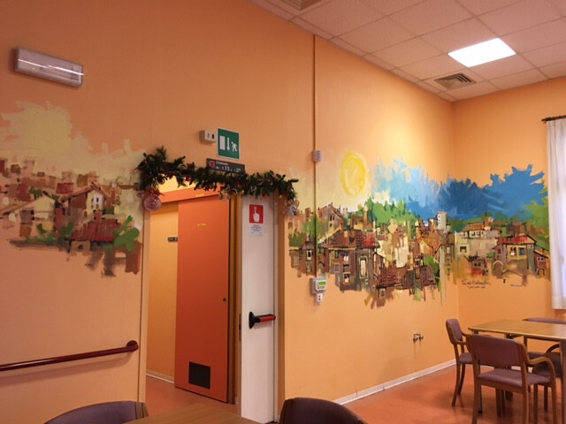 Nelle settimane scorse gli operatori e gli ospiti del Centro Diurno Albertoni hanno avuto la piacevole sorpresa dell’artista Giorgio Serra, conosciuto da tutti con l’appellativo di Matitaccia che, armato di pennelli, colori, matita e di uno smisurato amore per la nostra Bologna, ha iniziato a "scarabocchiare" alcune pareti. Tra la lo stupore di tutti, i muri hanno iniziato magicamente a prendere vita, trasformandosi in un bel scorcio dei tetti della nostra città.