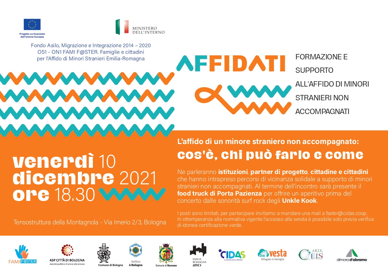 L’appuntamento di venerdì 10 dicembre costituisce il primo momento di presentazione pubblica ai cittadini della Regione a cui ne seguiranno altri organizzati localmente dai partner di progetto - ANCI Emilia-Romagna, Comune di Bologna, Comune di Ravenna, CIDAS Cooperativa Sociale, CEIS A.R.T.E. Cooperativa Sociale Onlus e Dimora D’Abramo Cooperativa Sociale. Ad inizio 2022 sarà attivato un percorso di formazione a cui potranno aderire i tutti coloro che desiderano partecipare a percorsi di affido di Minori Stranieri Non Accompagnati.