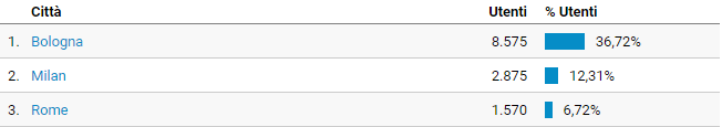 Il sito viene visitato al 95.96% dall'Italia, in particolare dalla città di Bologna, Milano e Roma (vedi tabella):