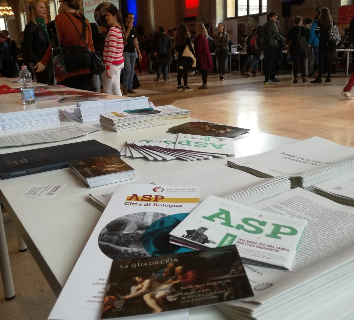 Il desk informativo, accompagnato da una breve presentazione sul palco, ha spiegato ASP e le possibilità offerte agli studenti descrivendo i due ambiti, distinti e interrelati, dei servizi alla persona e delle attività culturali: da un lato, la possibilità di svolgere tirocini, curriculari o post-laurea retribuiti, o attività di volontariato all’interno dei differenti ambiti e servizi; dall’altro lato, l’opportunità di visitare la Quadreria, il Museo attraverso cui ASP condivide le opere ereditate nel corso del tempo, e di partecipare alle molte iniziative in linea con lo spirito di ASP che qui si realizzano.