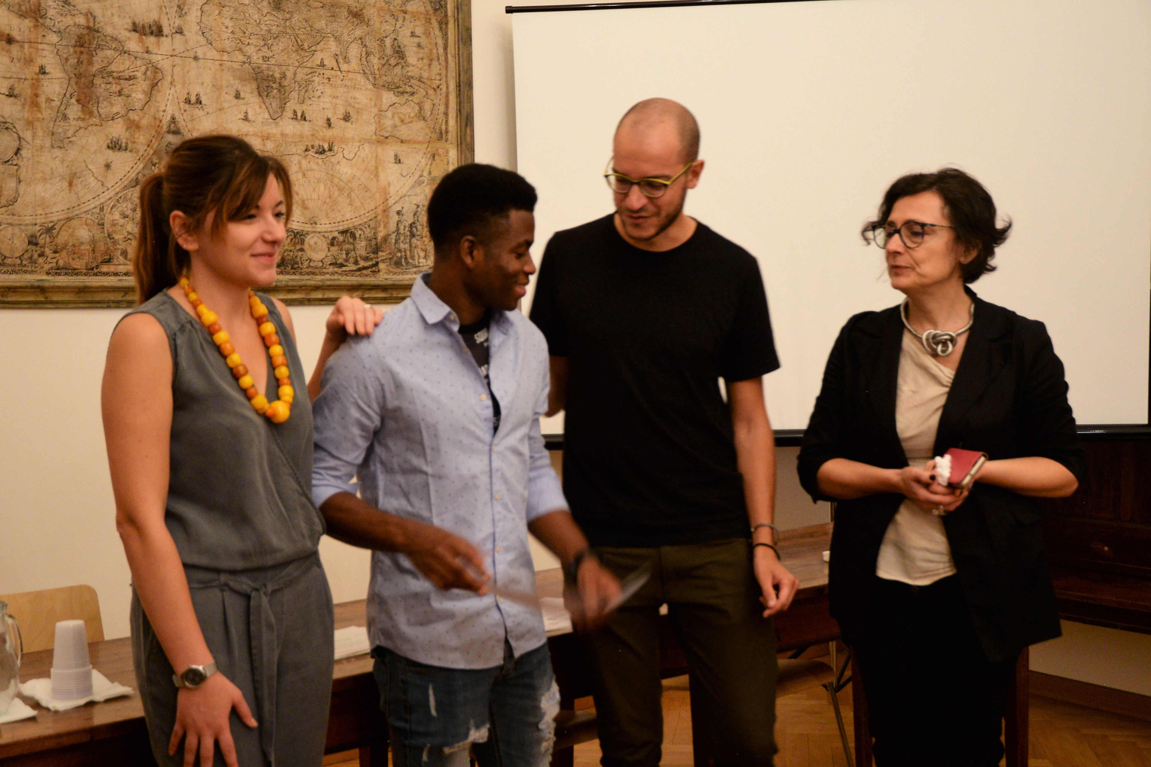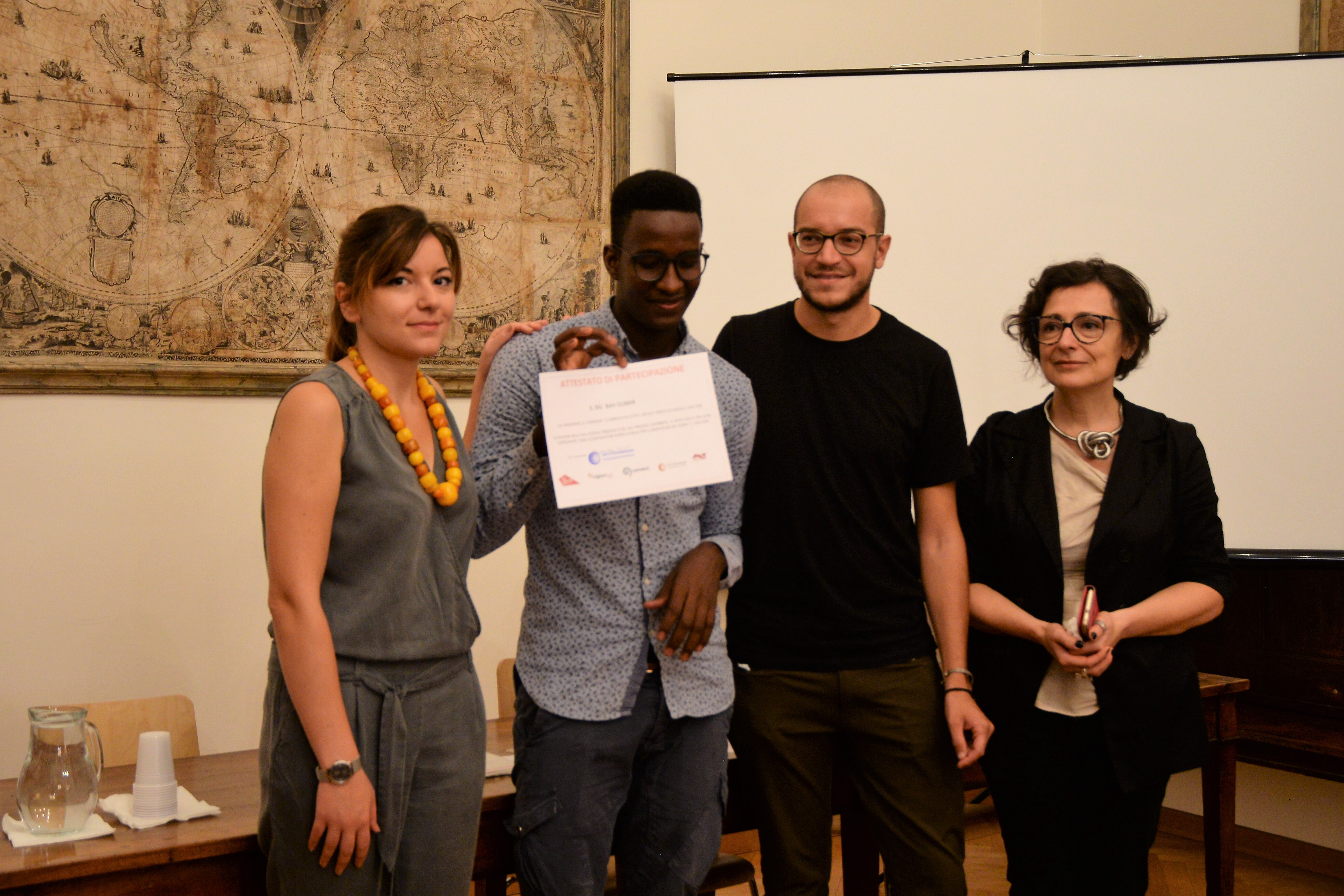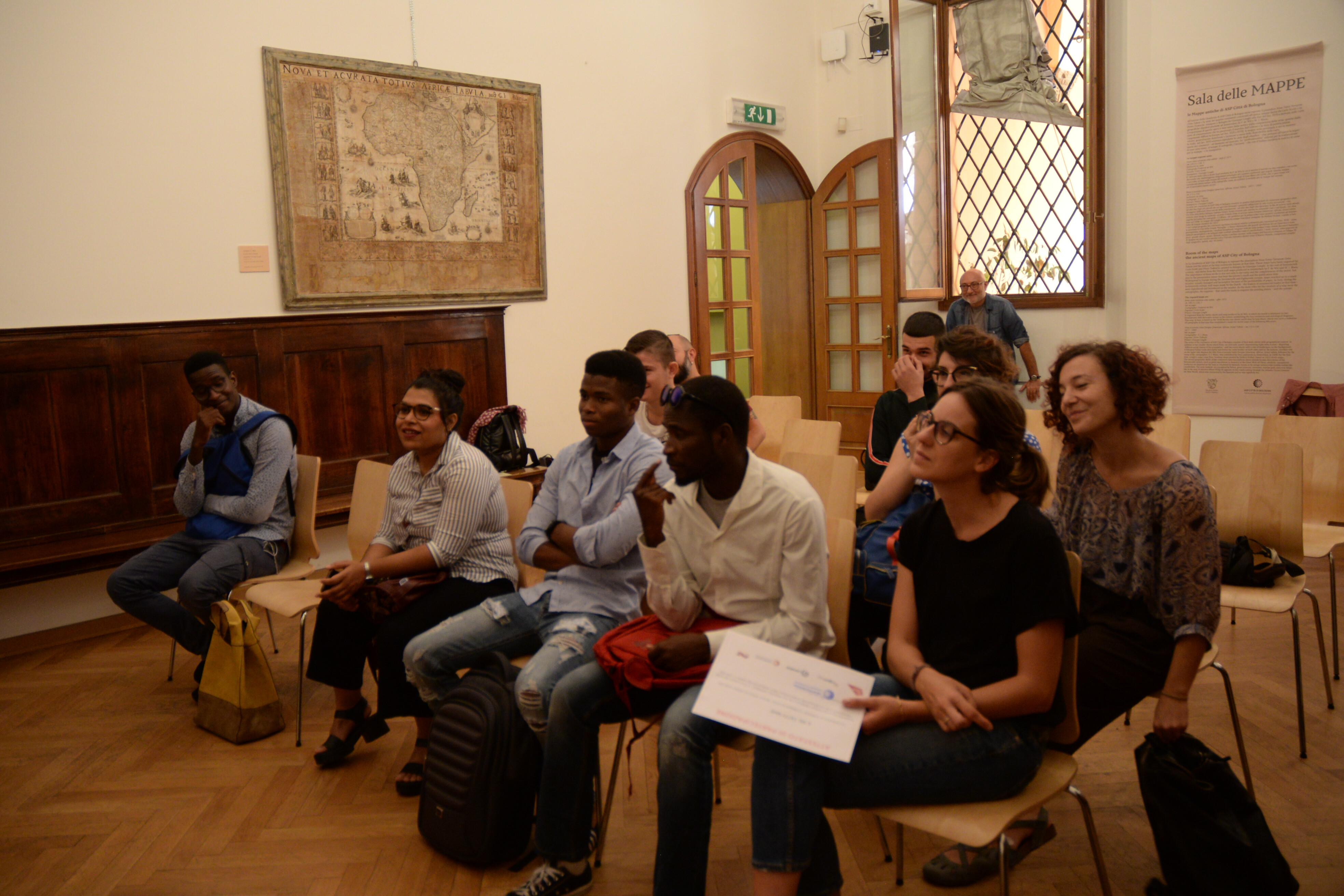 Si è svolta Mercoledì 19 settembre 2018 la consegna degli attestati alle ragazze e ai ragazzi che hanno partecipato a Migrantour “Corridoi in città”, presso la Sala delle Mappe della Quadreria di ASP Città di Bologna (via Marsala 7).Il laboratorio, promosso da ASP in collaborazione con l’associazione Next Generation Italy, la Cooperativa Camelot, It.a.cà., e Cantieri Meticci, è dedicato ai richiedenti asilo e rifugiati accolti nelle strutture SPRAR di Bologna, con alcuni posti per abitanti di origine straniera (seconda generazione).
