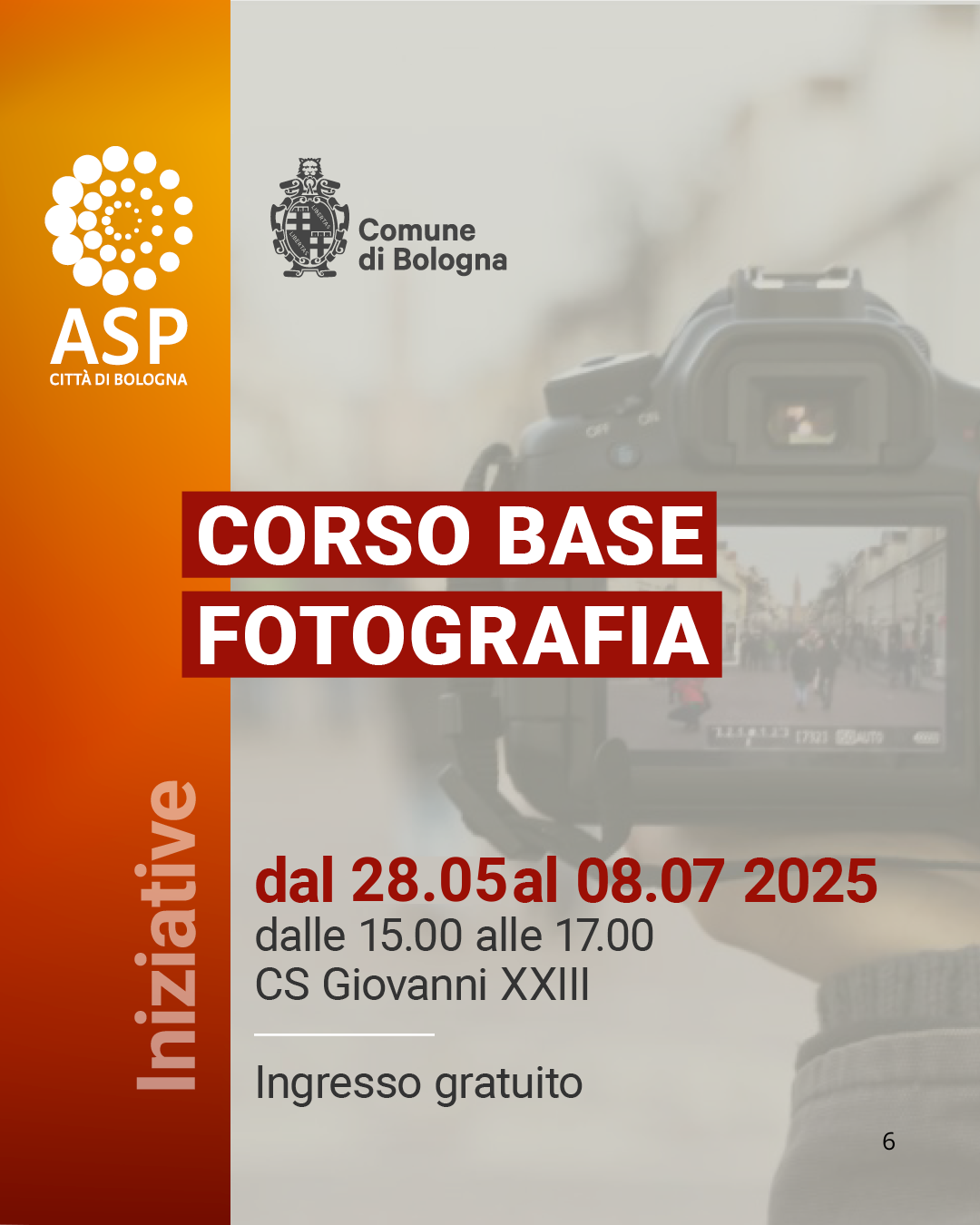 Non sono richieste conoscenze tecniche per la partecipazione al corso. In collaborazione con l'Associazione Tempo e Diaframma.
