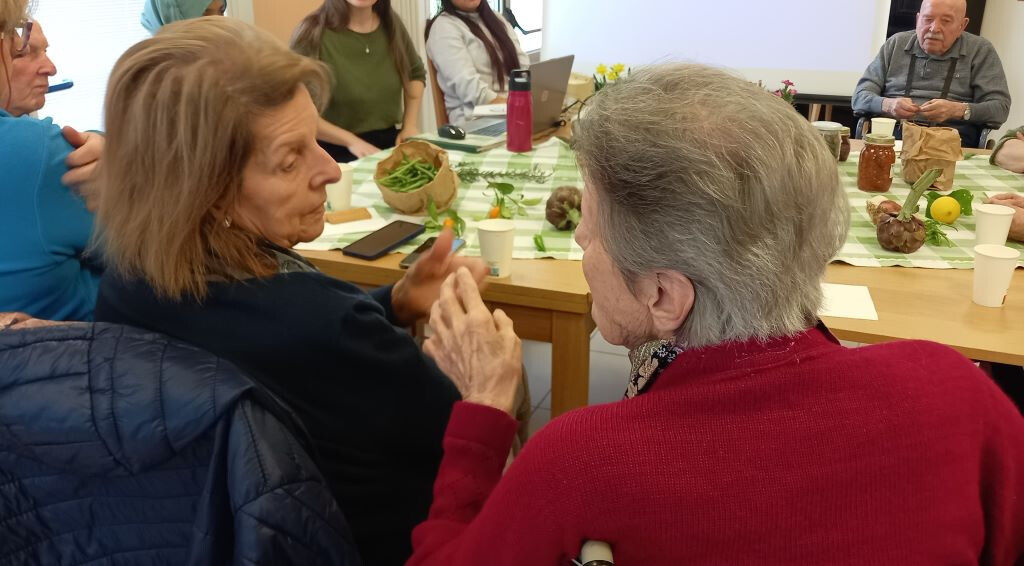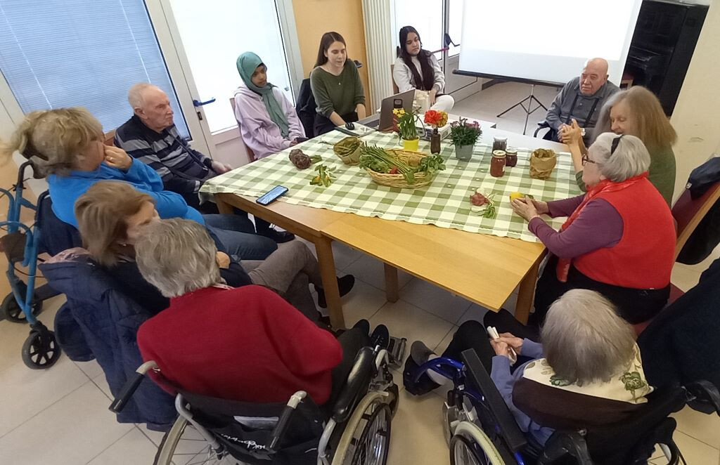 Agli ultimi appuntamenti si parla di primavera, della Pasqua, di quando si avevano vent’anni. E grazie anche al potere evocativo degli oggetti iniziavano racconti di vita e di epoche con altri usi e abitudini. La tavola attorno alla quale ci si raccoglie alla CRA di viale Roma è allestita con prodotti dell’orto, fiori e conserve, come àncore da gettare in un oceano di ricordi per trovare, o ritrovare, una rotta verso casa, attraverso il tempo che è passato.