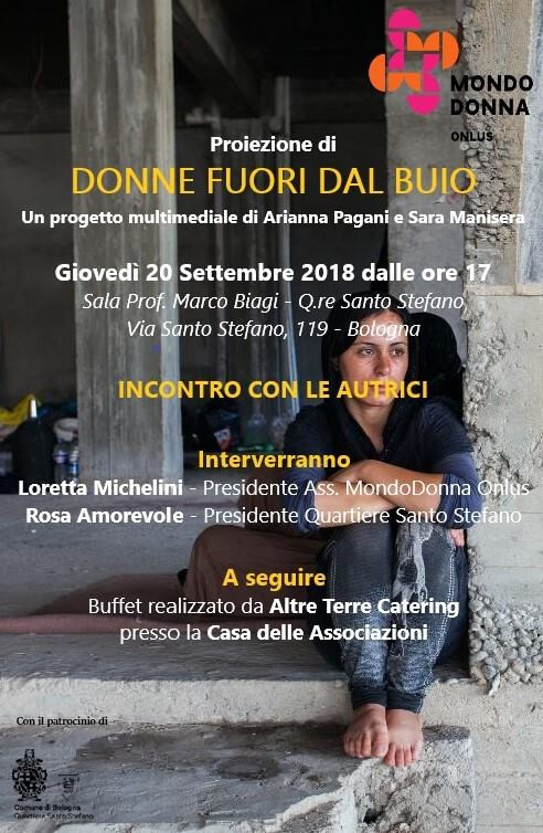 “Donne fuori dal buio” è un WebDoc - progetto fotogiornalistico, promosso dall'Associazione Mondo Donna che pone al centro le donne, vittime dirette o indirette dei conflitti, e la loro forza di resilienza. Il WebDoc ripercorre le fasi storiche dei conflitti in Iraq, lungo una linea temporale nei territori più rappresentativi del Paese - Baghdad, Halabja, Qaraqosh, Mosu - e le racconta attraverso la storia di quattro donne: una dottoressa, un’avvocata, un’attivista e una madre.