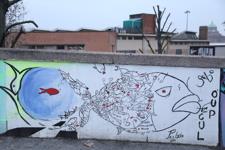 C'è un precedente rispetto al tema dei muri bolognesi colorati dalla street art, quello di un bellissimo progetto del 2016, sul Ponte di via Stalingrado a Bologna, in cui una quarantina di artisti, tra cui gli studenti dell’Accademia, diedero nuovo splendore al ponte proprio attraverso. Grazie al sito flashgiovani.it, riportiamo in questa sede alcune immagini di quella esperienza.