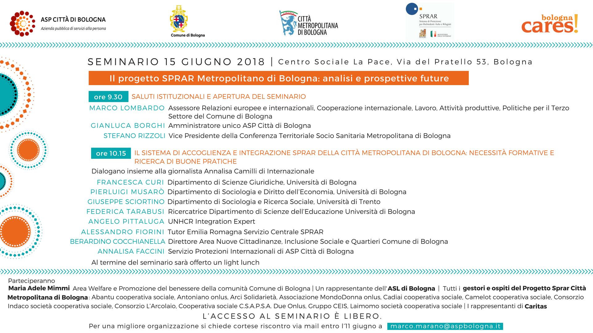 In occasione della Giornata Mondiale del Rifugiato il Servizio Protezioni Internazionali di ASP organizza venerdì 15 giugno a partire dalle ore 9.30, il Seminario "Il progetto SPRAR Metropolitano di Bologna: analisi e prospettive future". L'incontro, che si svolgerà presso il Centro Sociale La Pace | Via del Pratello 53 Bologna, sarà occasione per dialogare sul progetto SPRAR Metropolitano e per uno scambio sui temi di ricerca e formazione nei progetti di accoglienza e integrazione.