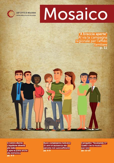 Nelle pagine di questo numero si parla di ASP in un welfare che cambia, del tentativo di creare modalità più efficaci per dare risposte ai bisogni sociali che si trasformano: della presentazione del progetto di sperimentazione che vede il Centro Diurno L'Aquilone, dedicato ad utenza affetta da demenza, aprire le sue porte anche di domenica; dalla Casa Residenza Anziani Saliceto che festeggia i suoi primi 25 anni di assistenza e cura alle persone non autosufficienti; dall'avvio al progetto Galaxy, una struttura di accoglienza per famiglie bolognesi in emergenza abitativa; dalla campagna regionale informativa per promuovere l'affidamenteo familiare, "A braccia aperte"; del progetto "Tacabanda", quello che la musica può fare ed, infine, del progetto "Porto 15" che rappresenta una forma di co-housing, abitare insieme. Pubblicato il 7 Gennaio 2016