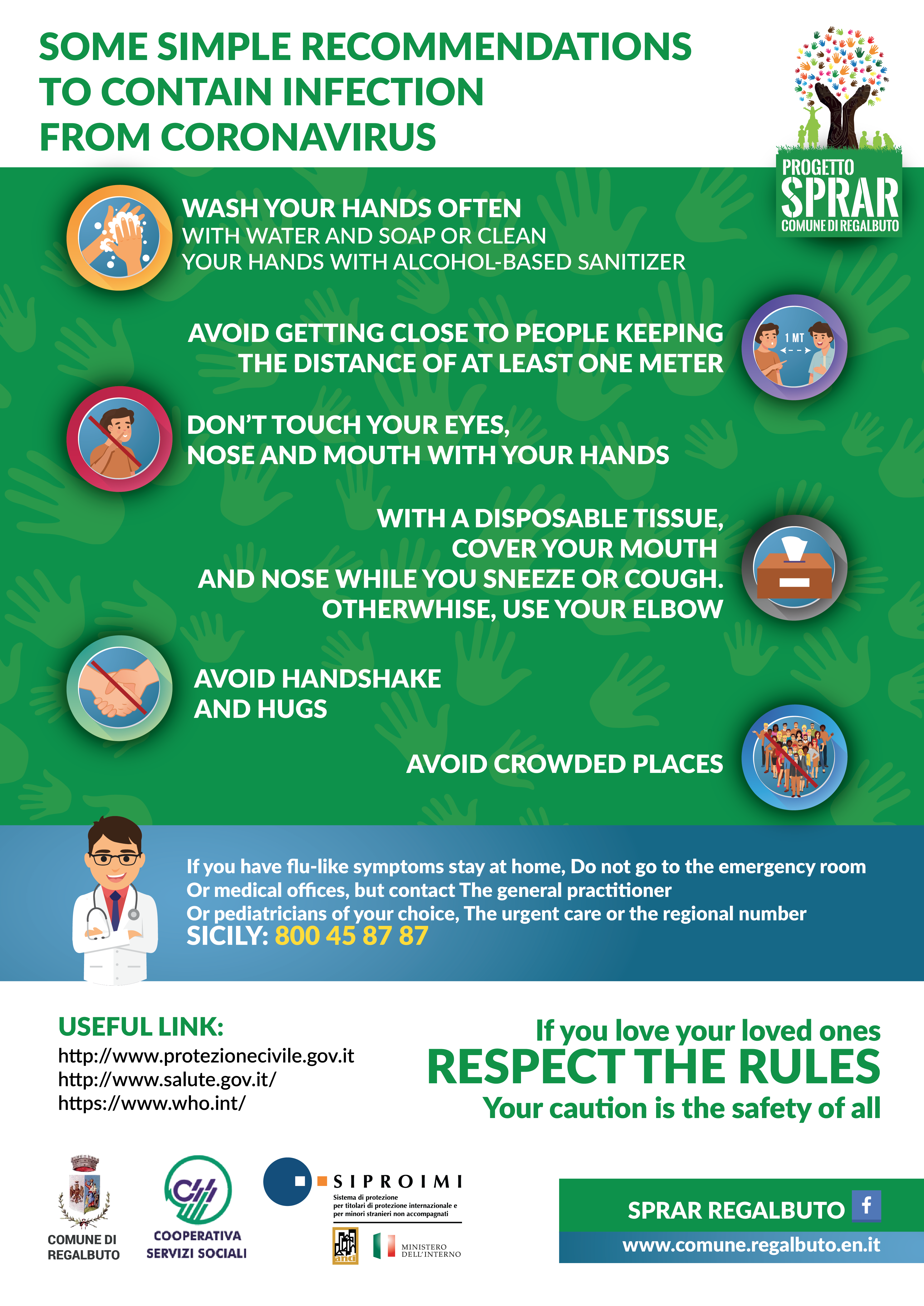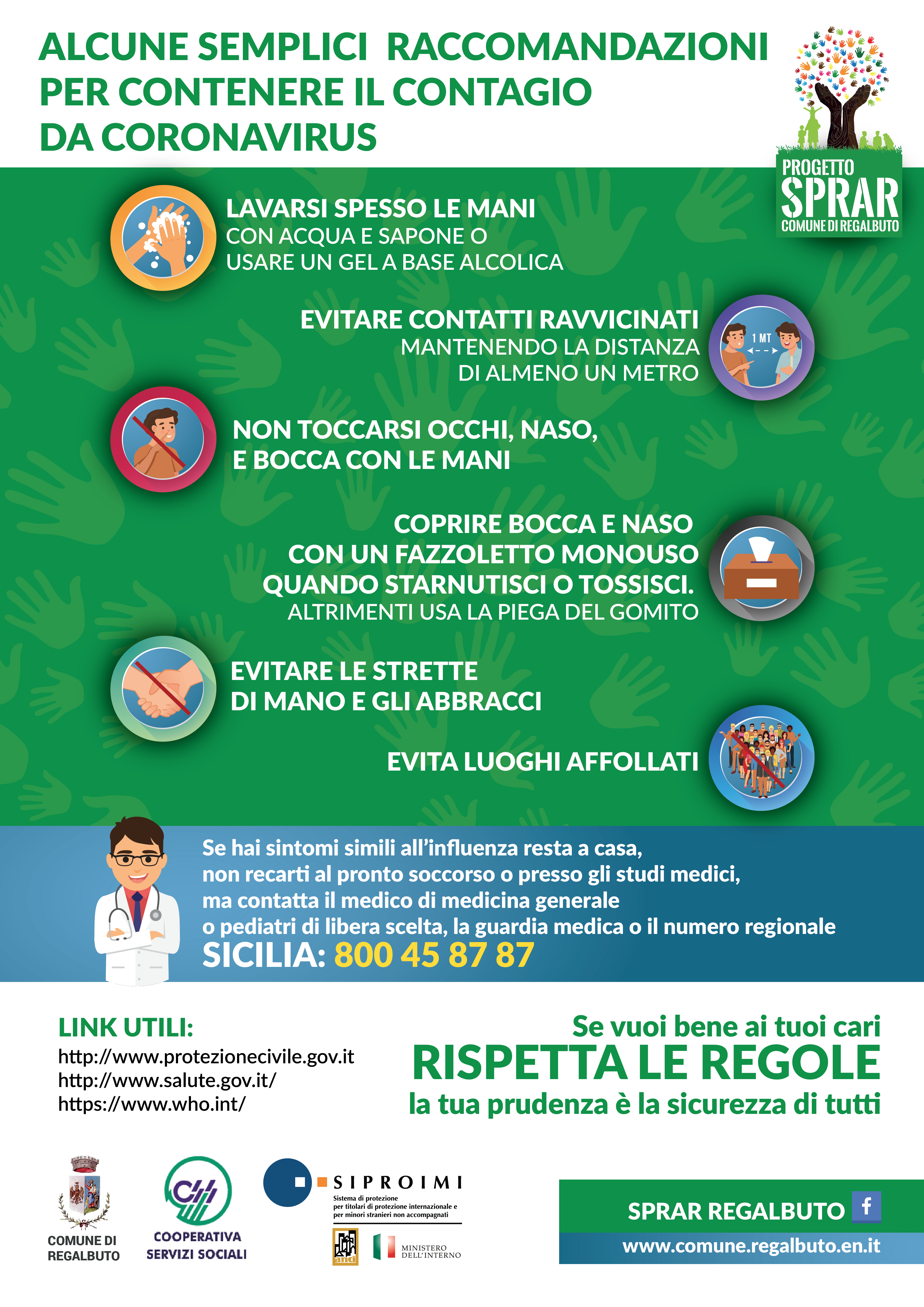 I progetti della rete SPRAR/SIPROIMI diffusi su tutto il territorio nazionale si stanno mobilitando per fare la propria parte nell’azione di contenimento del contagio da Covid-19 in cui è impegnata tutta la comunità nazionale. Operatori e beneficiari, adeguatamente informati e consapevoli, sono da giorni coinvolti in diverse attività di informazione e di aiuto alle persone più deboli.