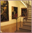 Quadri riuniti con l'unico scopo di raccontare una storia, quella del padrone di casa, resa evanescente, lontana dalla realtà contingente, da una schiera di angeli, santi e sibille: un gioco di rimandi che, come un gioco di specchi, svanisce se si muta l'ordine originale.