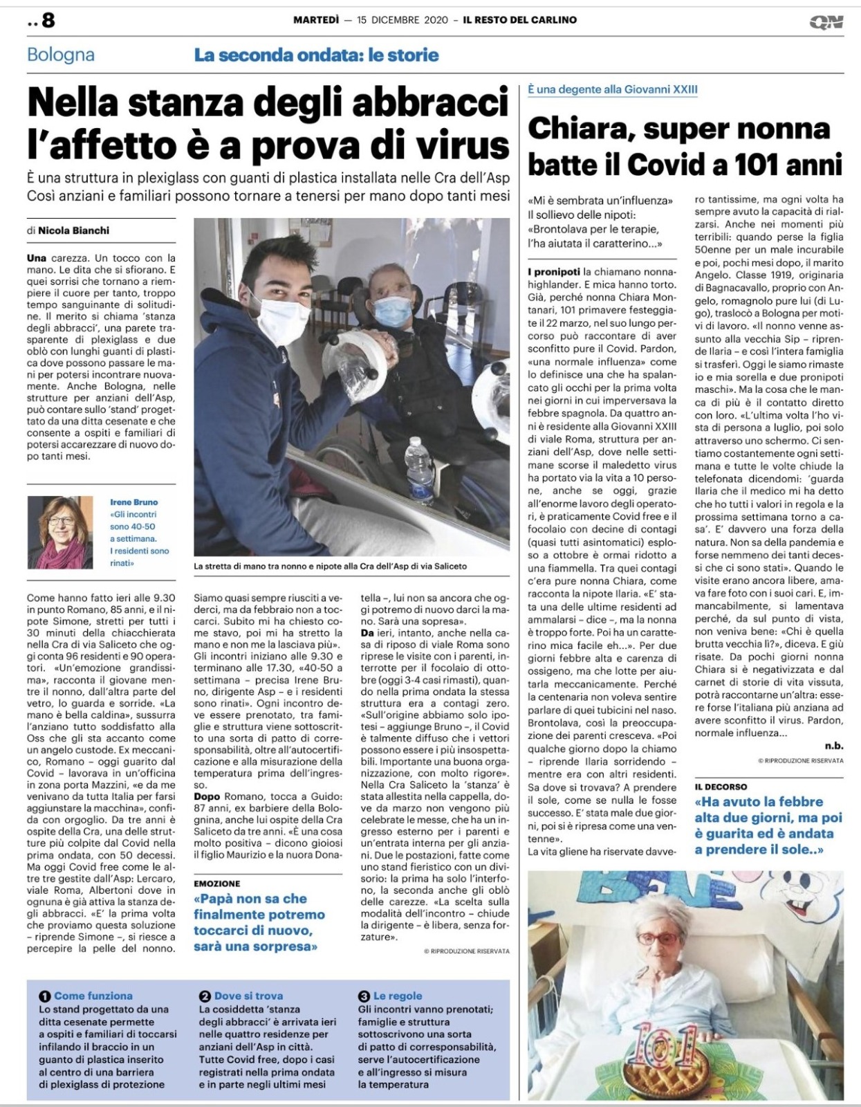 Servizio su Repubblica.it https://video.repubblica.it/edizione/bologna/coronavirus-la-stanza-degli-abbracci-nella-rsa-di-bologna/372989/373605?ref=app_la_repubblica&videorepmobile=1