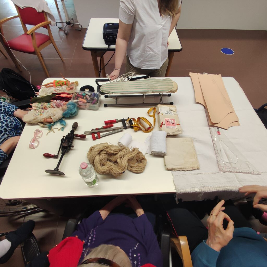 Walter ha discusso del suo mestiere di attrezzista, mentre Gina e Tiziana hanno ricordato il processo di stiratura dei capi di vestiario. La mattinata si è conclusa con la visione di foto di sarte degli anni '40 e '50 e un video su come si creano le calzature.