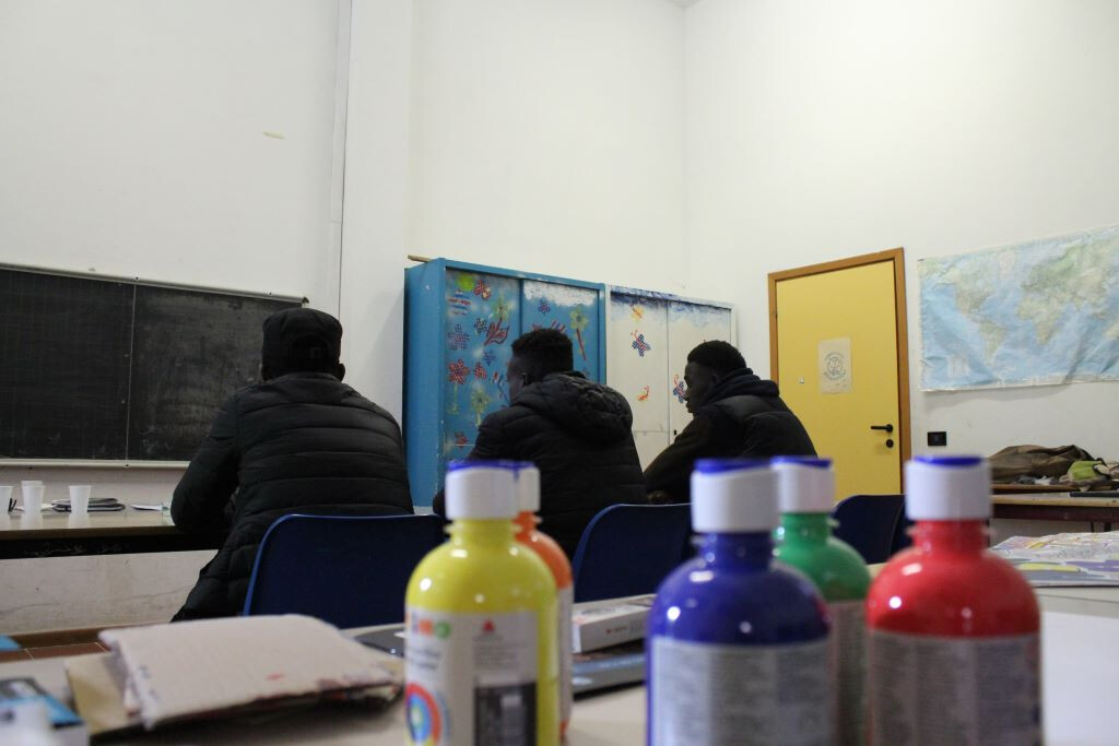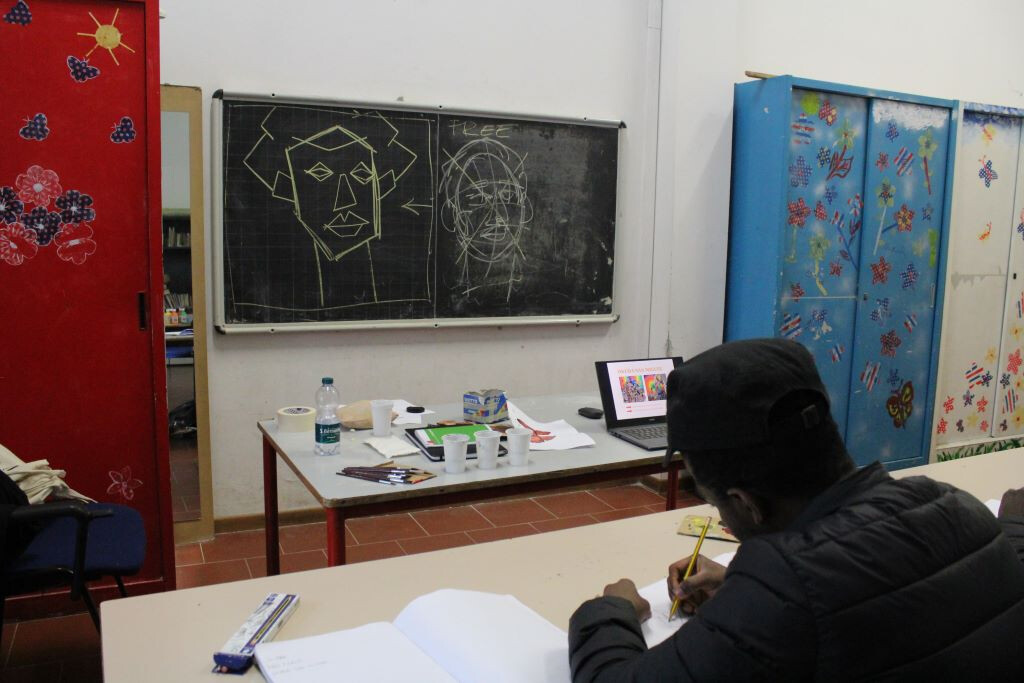 I tre ragazzi Mohamed, Mussa e Junior, liberiano il primo, gambiano il secondo, e camerunense l'ultimo, ad ogni incontro entrano con il sorriso e finiscono sempre con la stessa smorfia di soddisfazione. "E' bello venire qui, la mattina", dice Mussa in un italiano un pò sbilenco. Junior poi esce il suo quaderno personale dei disegni, e i tre ragazzi, pur parlando lingue differenti, uniti da una conoscenza traballante dell'italiano, li guardano insieme, meravigliandosi per quanto sono belli. Così i tre giovani artisti in erba, si danno il cinque...