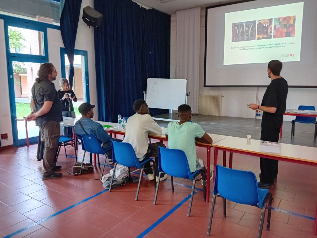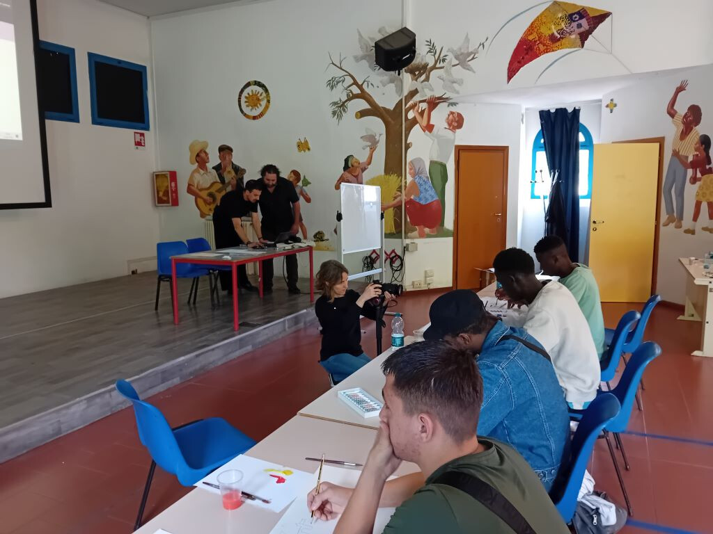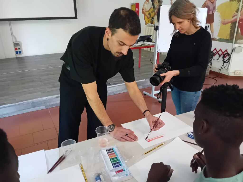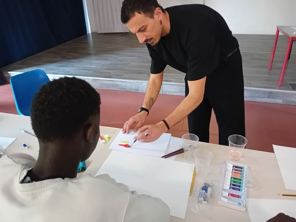 La mattina di sabato 13 aprile è cominciata con una novità: Shanawar, il ragazzo pakistano, non si è presentato, ma al suo posto è arrivato Junior, del Camerun, che ha portato con sé un quaderno pieno dei suoi disegni, mostrandoli orgoglioso al tutor Vincenzo Sarli: "Sono molto belli! Complimenti..." Il ragazzo, compiaciuto, si siede in attesa di iniziare: "Il laboratorio MistArt – ci dice Sarli - ormai sembra ben avviato. Sono felice di notare un maggiore coinvolgimento dei ragazzi, che a volte hanno da dire e da trasmettere più di quanto si possa immaginare. Il percorso con cui si procede li mette in condizione di assimilare le basi della produzione pittorica e artistica, per poi sperimentare di sana pianta." Con l'arrivo di Junior le lingue utilizzate per l'interazione con i ragazzi diventano tre: all'italiano e all'inglese si