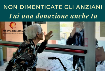 La nostra campagna di raccolta fondi continua. Chiunque può aiutare, con una donazione grande o piccola, a sostenere l’impegno quotidiano di ASP Città di Bologna, che assiste quotidianamente nelle proprie strutture residenziali e domicilio gli anziani con patologie croniche ed estremamente vulnerabili.