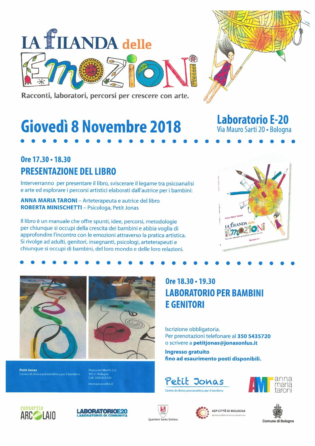 Giovedì 8 Novembre 2018 Presso il Laboratorio E-20 in Via Mauro Sarti n. 20 a Bologna, dalle ore 17:30 alle ore 18:30 verrà presentato il libro “La Filanda delle Emozioni”.