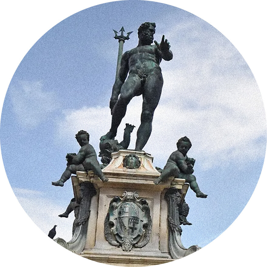 Il Falansterio si colloca idealmente al centro di un itinerario che unisce due simboli di Bologna: la statua del Nettuno , nella fontana al centro dell’omonima piazza, e il Santuario della Madonna di San Luca .
