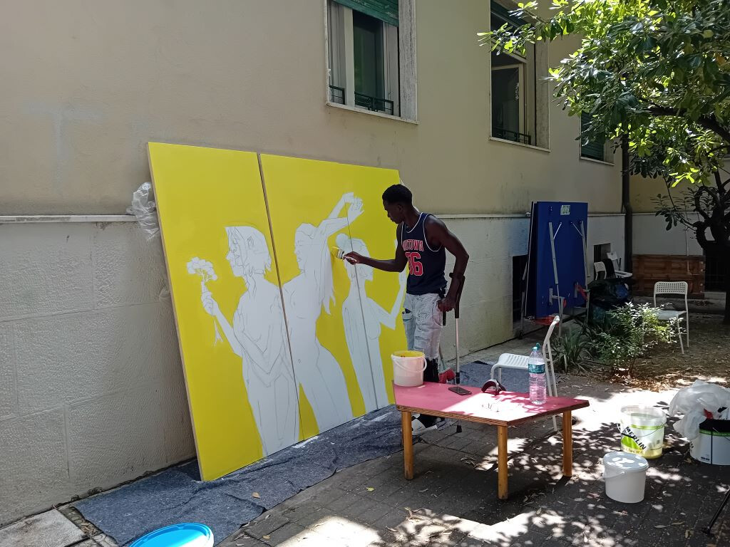 “Il progetto Mistart ha visto nelle sue fasi progettuali e procedurali, diversi cambi di programma dettati da esigenze temporali e produttive. Dopo aver appreso la notizia dell’operazione al ginocchio di Musa, uno dei ragazzi partecipanti al laboratorio, abbiamo lavorato per trasformare questo limite in una possibilità aggiuntiva. Così, il laboratorio si è spostato a Casa Murri, per consentire a Musa un’attiva partecipazione. Il supporto del muro, naturalmente, è stato sostituito con dei pannelli di legno d’abete, facili da trasportare e da maneggiare.”