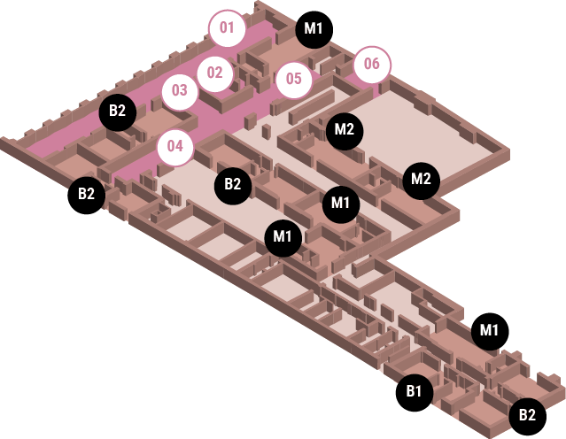 Nell’angolo dell’ampio corridoio attiguo troveranno luogo due grandi sinopie dell’importante affresco di Francesco del Cossa (Ferrara, 1436-1478) raffigurante la Madonna e il Bambino su un trono, circondata da una raffinatissima cornice con angeli reggenti candelieri e scorci di paesaggio, testimonianze uniche di uno degli affreschi quattrocenteschi più importanti della città, conservato nella chiesa del Baraccano, anch’essa di proprietà dell’ASP.