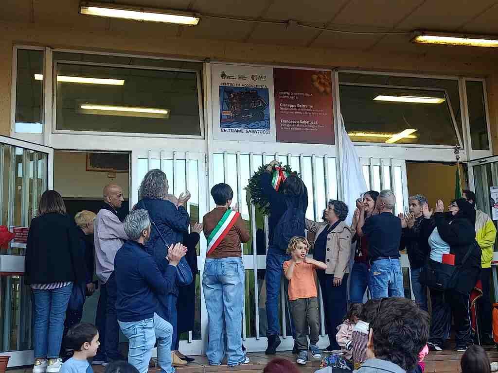 Nel cuore del quartiere San Donato-San Vitale, il 23 aprile il Centro di accoglienza Beltrame-Sabatucci ha accolto la Passeggiata Antifascista organizzata con il Comune di Bologna. Alle 19.00, oltre duecento persone, tra adulti e bambini, si sono radunate per scoprire insieme la nuova vetrofania che intitola il Centro a Giuseppe Beltrame e Francesco Sabatucci, due giovani partigiani bolognesi caduti per la libertà. Un momento intenso, reso ancora più emozionante dalla presenza della professoressa Franca Scanabissi, nipote di Francesco Sabatucci, e dall’assessora al Welfare Matilde Madrid: parole, volti, storie che si intrecciano e si fanno eredità viva.