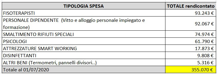 Di seguito alcuni grafici sui dati di costo coperti dalle donazioni: