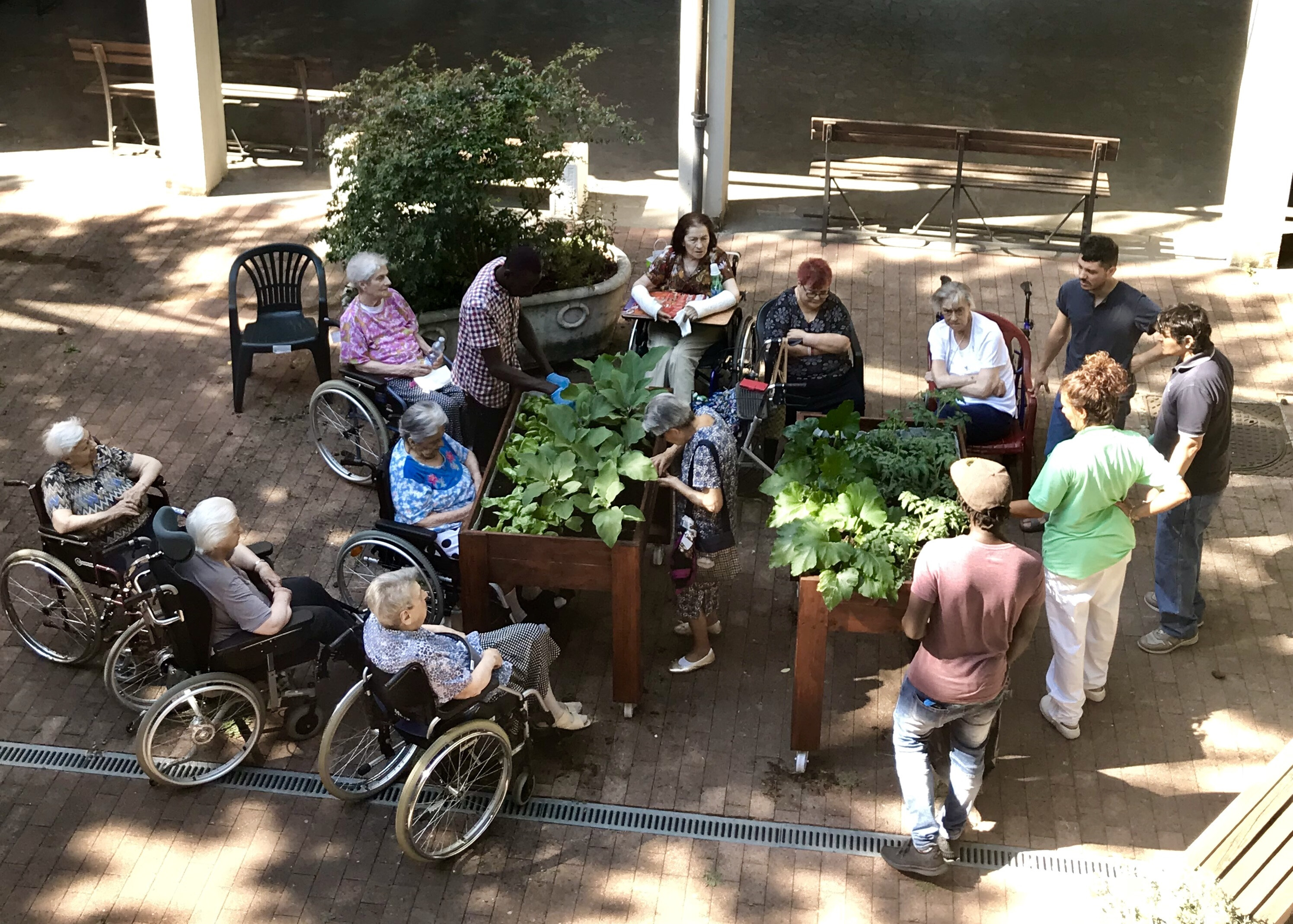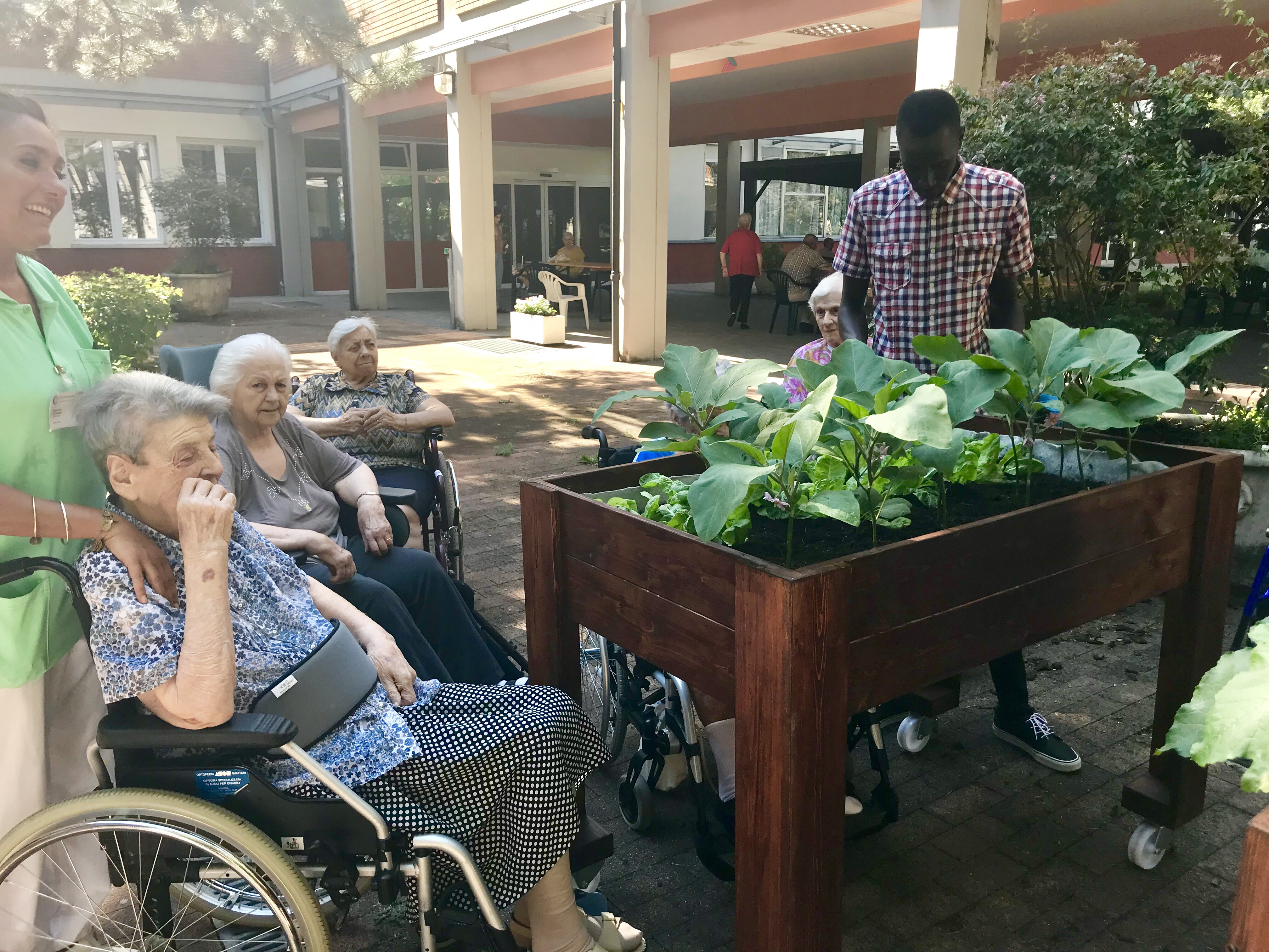 Questi orti, coltivati in cassoni di legno costruiti nella falegnameria di ASP dai tirocinanti, sono posizionati ad una altezza che consente agli anziani di lavorare la terra senza stancarsi, di essere accessibili anche alle persone con difficoltà motorie nella deambulazione o che si muovono in carrozzina.